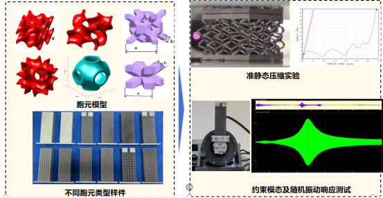 以飞行器结构轻量化为目标,开展了飞行器结构增材制造技术研究,探究三维点阵结构的宏观力学性能与内部细微观胞元的几何构造、分布特征和变形模式的映射关系,通过三维点阵胞元几何构型设计和分布特征调控,实现宏观结构的高承载、高吸能和强韧化。