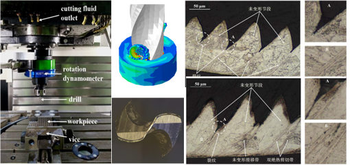 (1)难加工材料及仿真:针对军用难加工材料开展高速高精度切削试验技术、切削区材料唯象本构关系建模方法,已加工表面位错/残余应力/相变、基于“差分”磨损模型预测刀具磨损的方法学、基于MD-FEM技术的纳观-微观-宏观跨尺度仿真预测、基于有序多刃加工思想和多自由度切削概念的铣-铣复合加工新方法、复杂精准刀具设计理论和制备技术等研究。