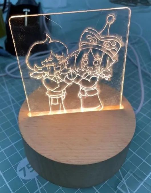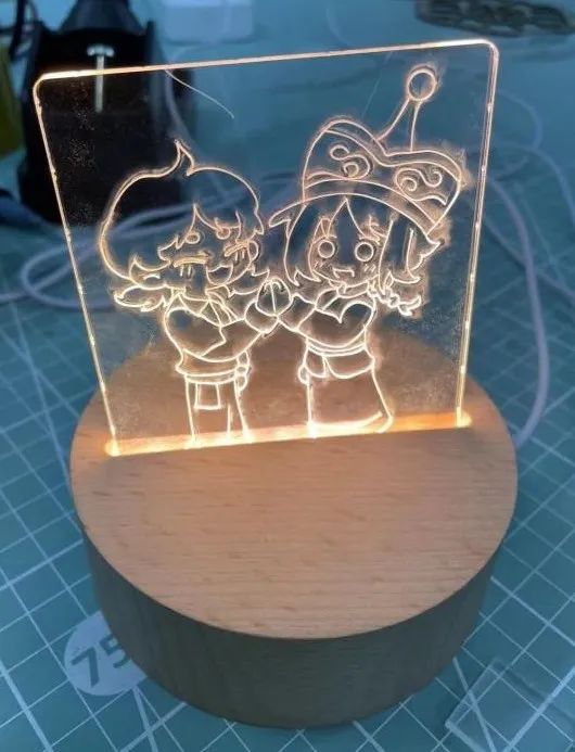 可以自由发挥设计的亚克力!大小,外形,都可以自己DIY!通过激光切割,可以刻画出设计出的线条。线条如果是双线设计还可以进行填色(如下图所示)。可以搭配灯座变身小夜灯。也可以自己设计立牌底座进行DIY噢!