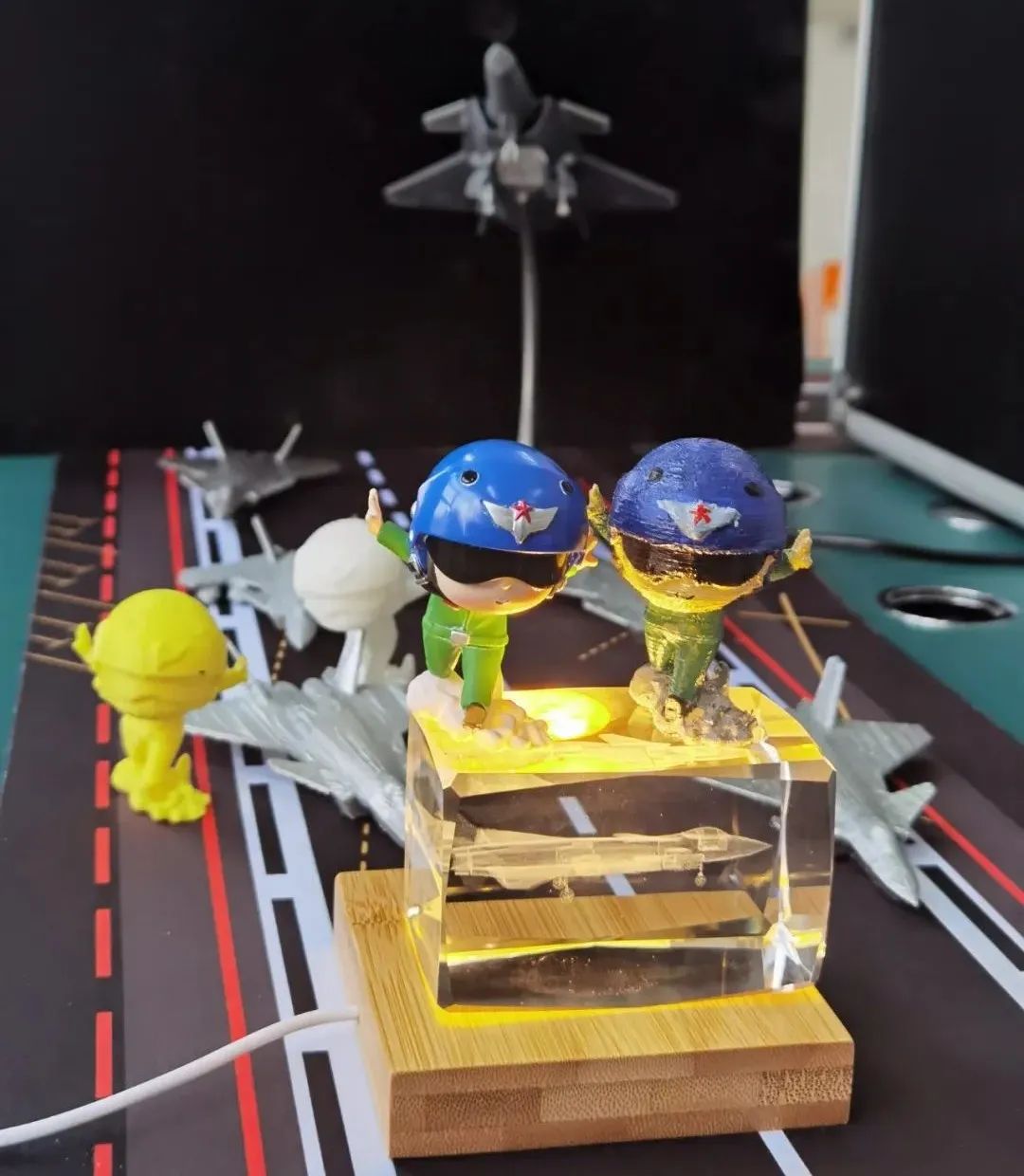 在水晶玻璃中采用激光雕刻出立体模型!工训中心提供多种可选模型,也可以自行设计亚克力or金属底座进行搭配~