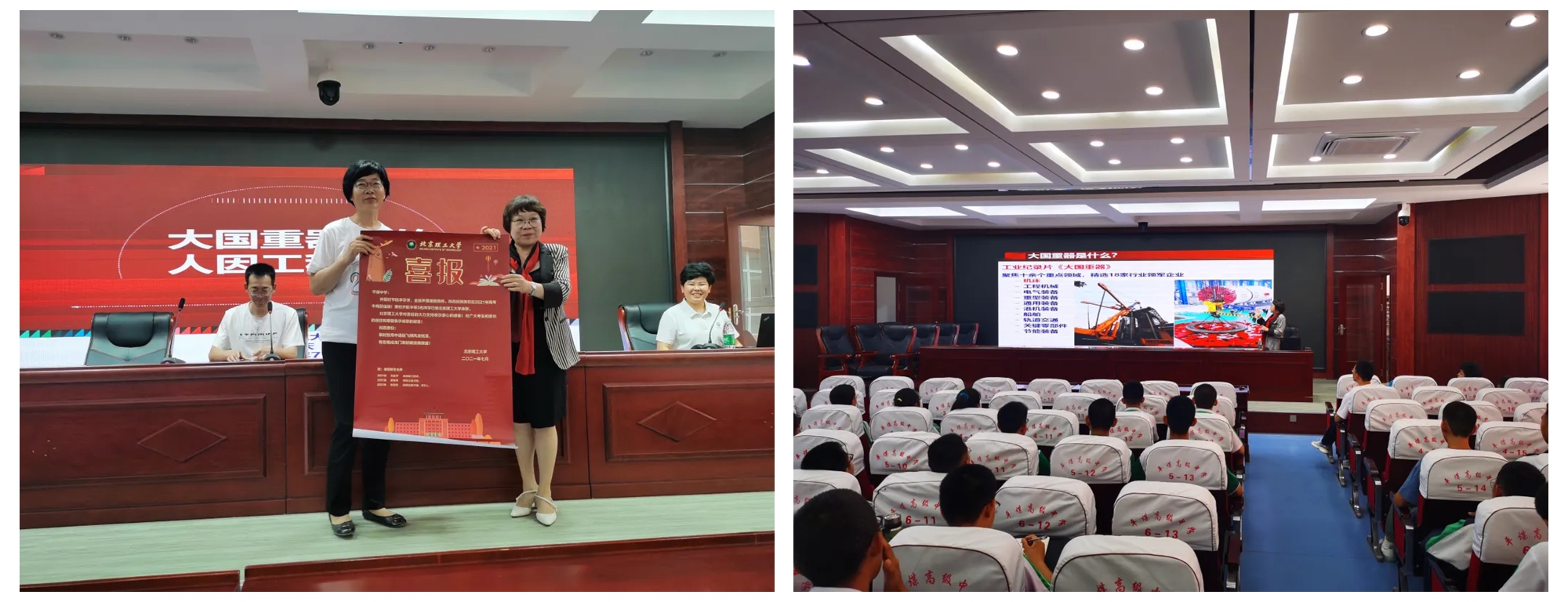 在2021年录取结果公布后,全国模范教师薛庆教授、领航人仇天阳老师代表招生组第一时间为赤峰元宝山区平庄煤业高级中学送去喜报。薛庆教授进行了题为“大国重器中的人因工程技术”的专题讲座,她强调重大科技创新成果是国之重器、国之利器,必须牢牢掌握在中国人自己手上,必须依靠自力更生、自主创新;勉励学生为科技强国建设做出自己的努力。