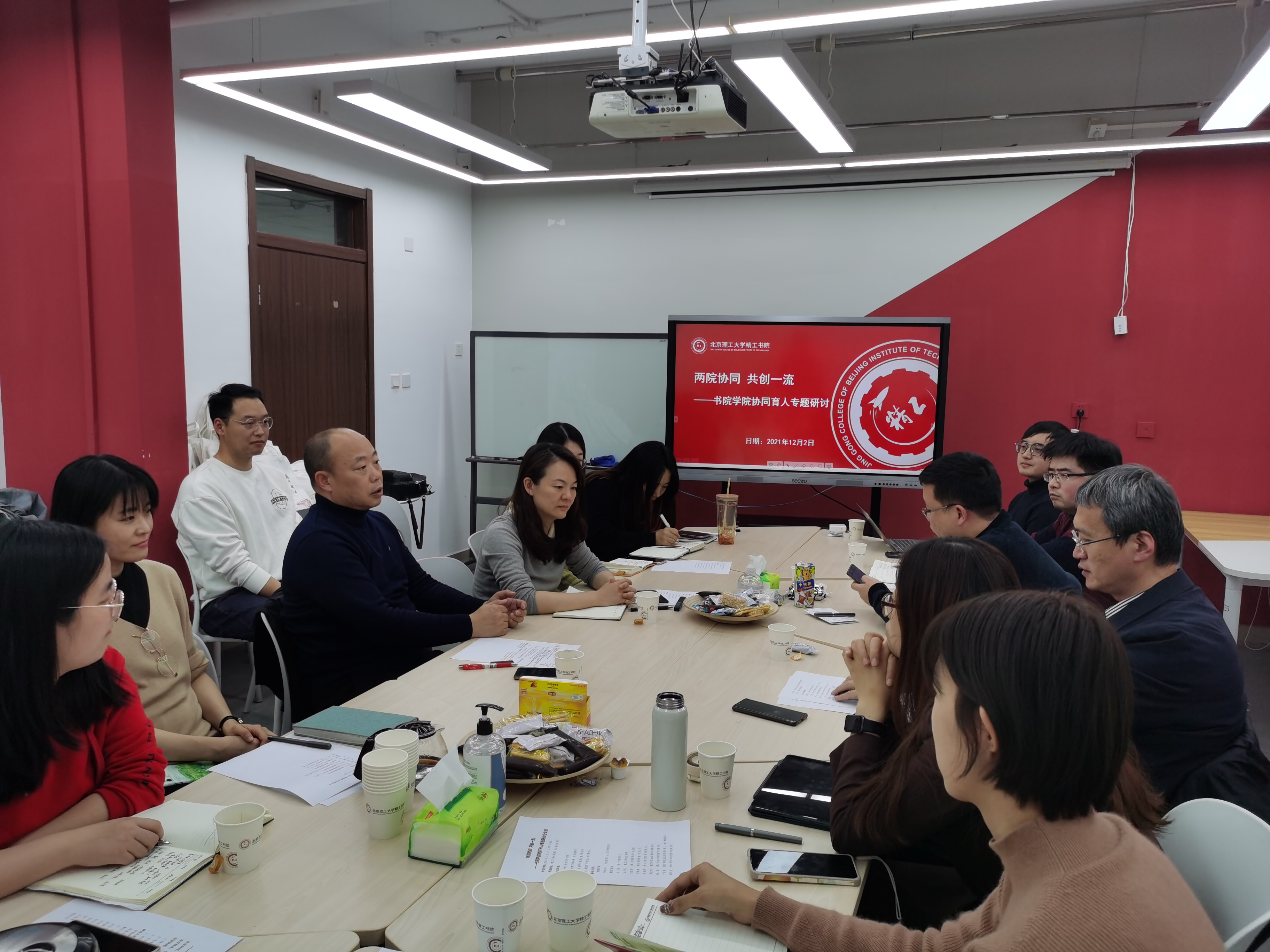 下午14时于丹枫园C115会议室开展了书院学院协同育人专题研讨会及“院长面对面”精工成长圆桌会,书院党委书记、北京书院院长张振华、精工书院副院长方蕾、精工书院院长助理赵杰亮、精工书院综合办公室主任张盟初及2020、2021级辅导员和15名学生代表参会。方蕾首先介绍了精工书院的文化理念、建设思路、组织框架及特色工作,随后双方就党建引领共建、学生职业生涯发展、两院双创协同等专题进行了深入的探讨。在精工成长圆桌会上,学生代表就课程学习、专业确认、生涯发展、目前困惑等方面与参会的领导进行了充分的沟通交流。