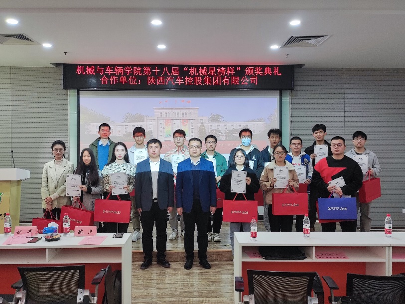 第二环节是颁奖环节。倪俊为获奖同学颁发荣誉证书,梁军和魏杰为获奖同学发放了陕汽控股集团精心准备的获奖礼品。倪俊感谢陕汽控股集团对我院人才培养工作的支持,号召同学们要向身边的榜样看齐,争做新时代好青年,自觉扛起社会的责任与担当,勇于探寻想事、干事、成事的工作方法,练就“逢山开路、遇水搭桥”的过硬本领,努力创造一流业绩。