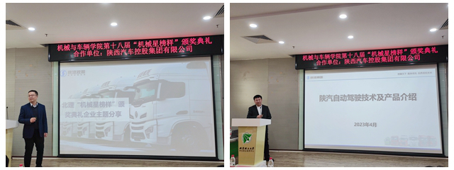 随后梁军从整体上介绍了陕汽控股集团的基本情况、校友发展和人才招聘政策,魏杰结合学院专业介绍了陕汽自动驾驶技术水平及产品分类。至此活动圆满结束。