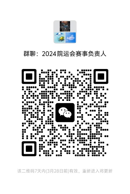 3.请以班级为单位推选班级运动会负责人(每班一名)并于3月24日20点前扫描下方二维码进入“2023年学院运动会赛事负责人群”。