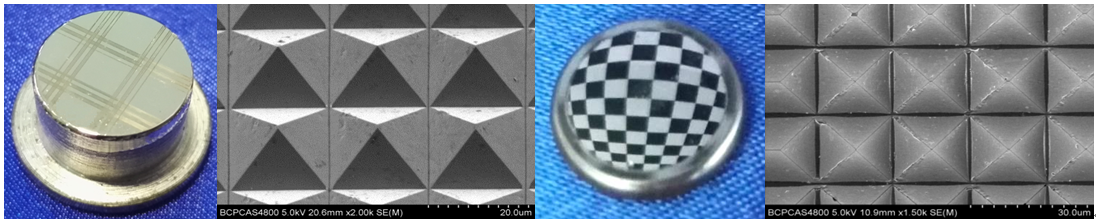 (5)微纳光学制造:主要开展高精度金刚石刀具切削模压用微结构阵列模具理论与试验研究,新型模具材料磷化镍Ni-P镀层制备、特性测试与分析及其微纳加工研究。研究磷化镍Ni-P镀层材料成分调控及性能强化技术,磷化镍Ni-P有限元切削仿真模型,微切削过程极小变形区磷化镍Ni-P多相态的剪切滑移机理及其切削。开展光学透镜、菲涅尔透镜及微结构阵列等光学器件的模压成形研究,以实现高精度、高效率、低成本制备复杂结构微光学器件为目标,研究粘弹性材料高温本构建模,界面摩擦与润滑,成形件的黏接与分离等技术,以高精度高效率实现微结构的尺寸极小化与面积极大化。