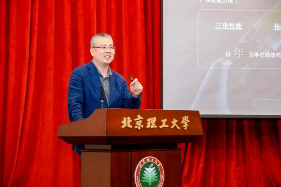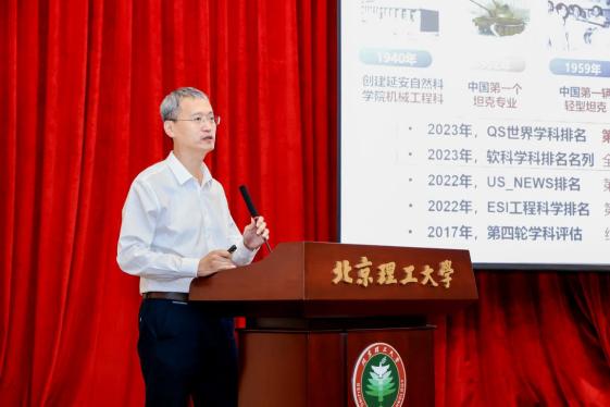 孙逢春代表“北理工三代车辆人”,作题为《智能网联新能源汽车未来技术与产业发展》的专题报告,回顾了带领团队开创中国新能源汽车、服务国家重大活动的点滴岁月,勉励新时代北理工人,不断开拓进取,创造北理工人新的辉煌。