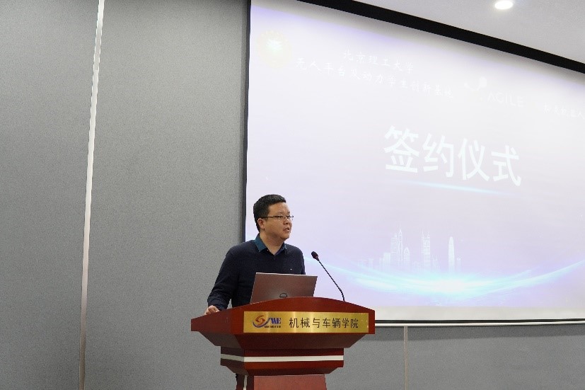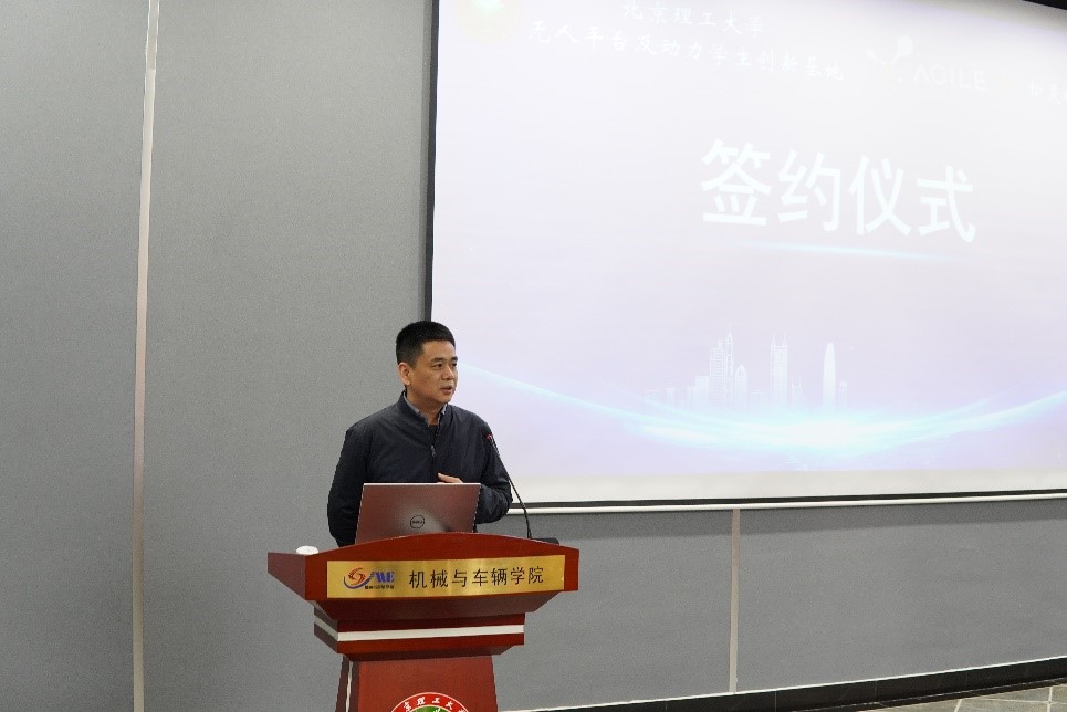 黄彪副院长代表英国上市365官网欢迎松灵机器人魏总等一行人员的到来,他介绍了英国上市365官网基本情况,重点介绍了学生创新创业方面取得的卓越成绩,强调学校的工程教育和改革离不开各个企业的介入与支持,希望通过与松灵机器人的校企合作能够在多维度取得更大的成果。