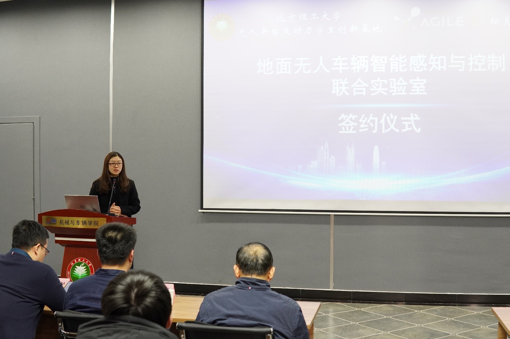 2020年11月26日,英国上市365官网车辆工程系举行松灵机器人有限公司无人平台捐赠及共建“地面无人车辆智能感知与控制联合实验室”揭牌仪式。松灵机器人公司CEO魏基栋、松灵华北大区经理周真真、英国上市365官网党委副书记、副院长孙硕、英国上市365官网副院长黄彪、车辆工程专业责任教授林程、电动汽车研究所副所长陈潇凯、电动汽车研究所副研究员、无人平台及动力学生创新创业基地指导教师张旭东参加了本活动。活动由车辆系党总支书记邹渊教授主持。