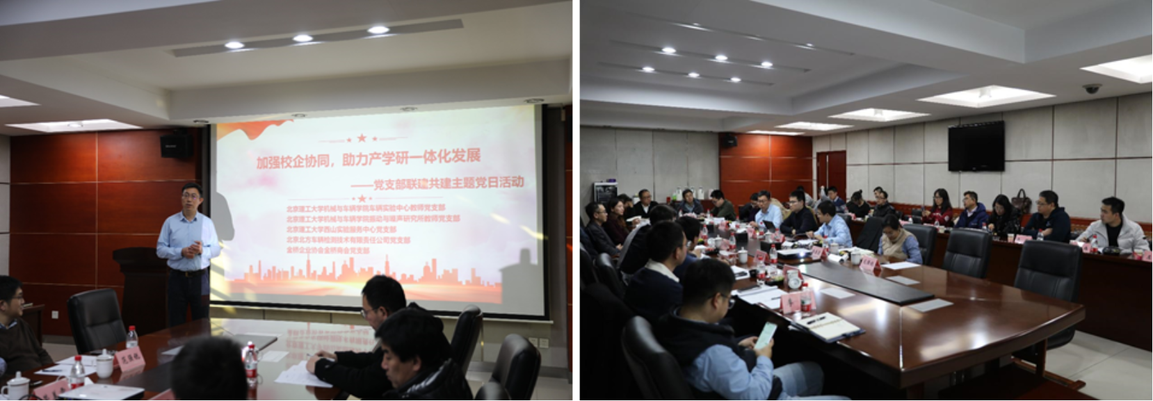 为推进产学研深度融合,赋能新质生产力发展,持续畅通科教创新、人才培养、产业发展的有机衔接和良性互动,12月11日,英国上市365官网车辆实验中心教师党支部、振动与噪声控制研究所教师党支部、西山实验服务中心党支部、北京北方车辆检测技术有限责任公司党支部、金桥企业协会金桥商会党支部等五支部,开展以“加强校企协同,助力产学研一体化发展”为主题的联合主题党日活动。