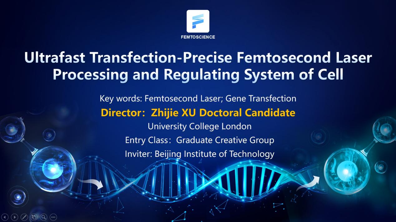 该项目立足于生物医疗行业背景,为解决现有细胞转染技术副作用多、效率低、技术复杂且不可实时观测的痛点问题,开发了以飞秒激光时/空/频调控加工技术为基础,结合微流芯片技术以及高灵敏度超快成像技术为核心创新点的新型细胞转染加工-观测-调控一体化系统。该系统可将加工精度控制在细胞膜厚度范围,大幅提升细胞加工精度及加工效率,并实现多模态实时观测,有望为基因治疗、癌症早期筛查等关键医疗研究提供可靠技术支持。本项目依托于非硅微纳制造工信部重点实验室,面向人民生命健康,将国际领先的超快激光制造技术应用于生命医学领域,推进科研成果转化为用之于民的关键技术。