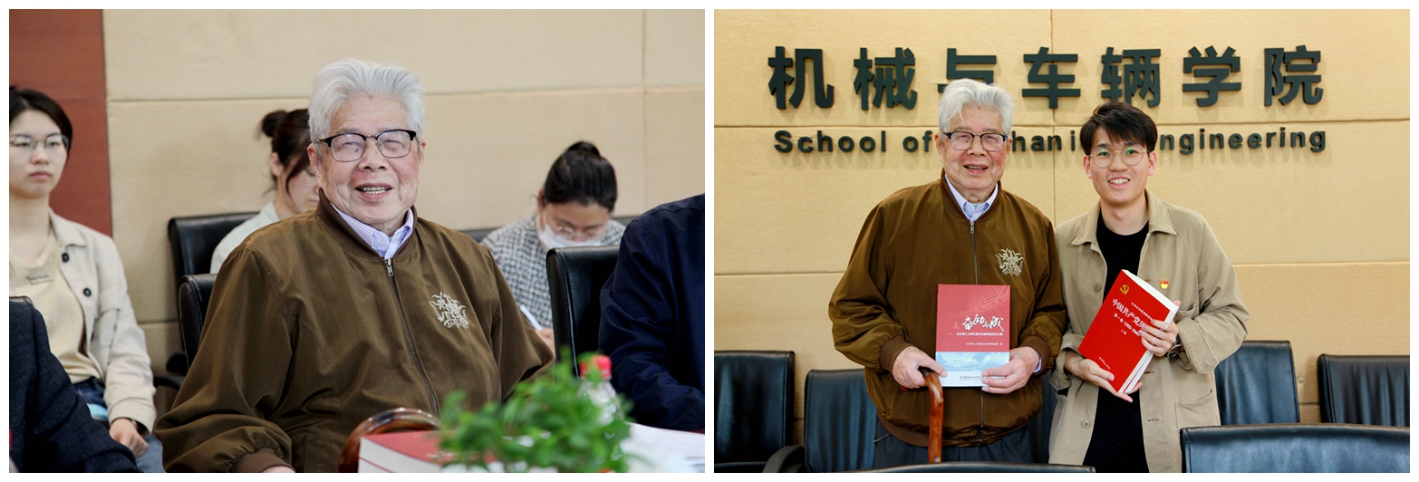 学院为胡教授准备了师生文集《奋励而成》,胡教授也向学生代表赠送了党史学习书籍,这一过程既传递了知识,也将“延安根、军工魂”的红色基因代代相传。老一辈党员的奋斗精神将引领广大师生在学思践悟中坚定理想信念,领悟爱党爱国精神,激发昂扬向上的斗志。