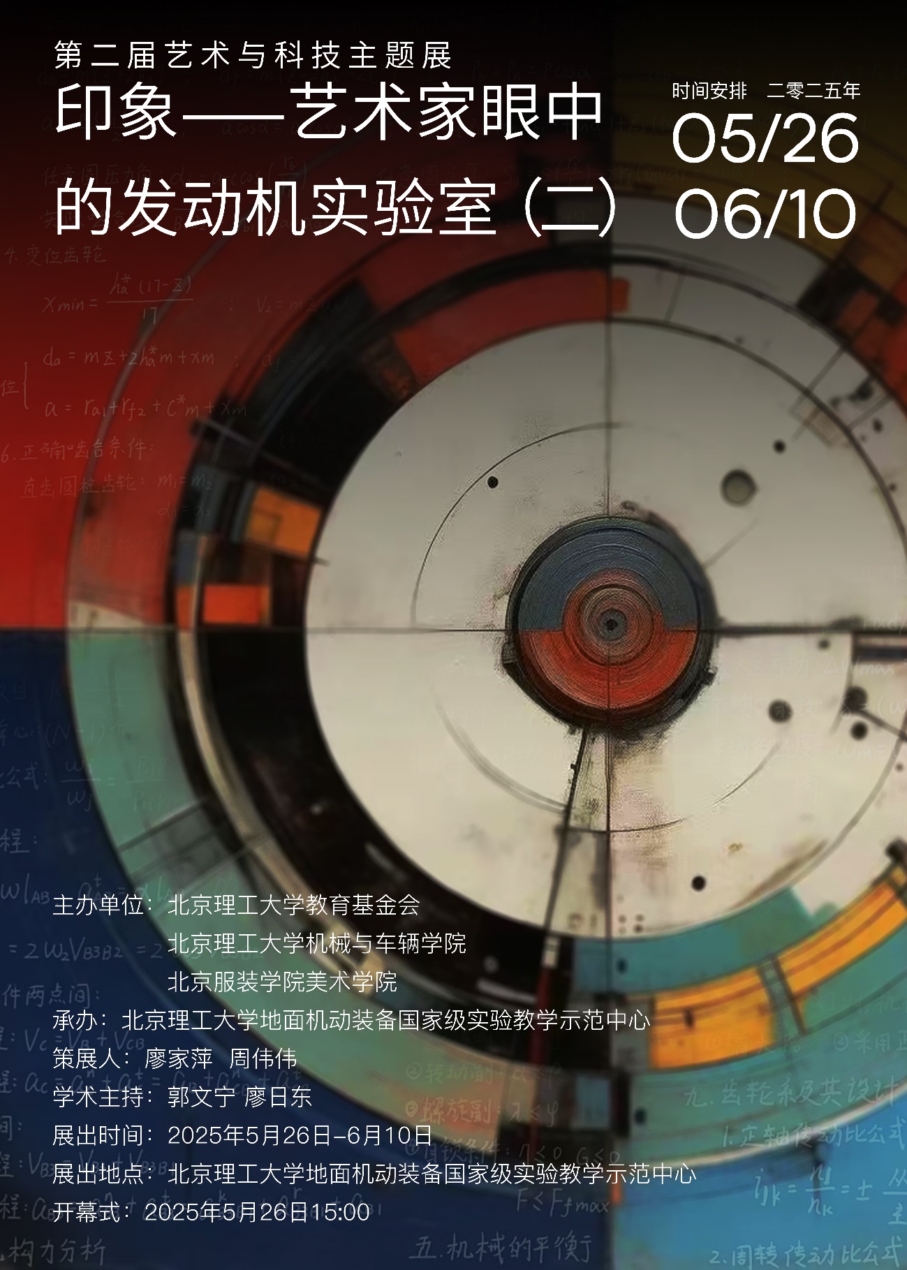 2025年5月26日,由英国上市365官网教育基金会、英国上市365官网、北京服装学院美术学院联合主办的第二届艺术与科技主题展:“印象——艺术家眼中的发动机实验室(二)” 在英国上市365官网地面机动装备国家级实验教学示范中心正式开幕,展览时间为5月26日-6月10日。