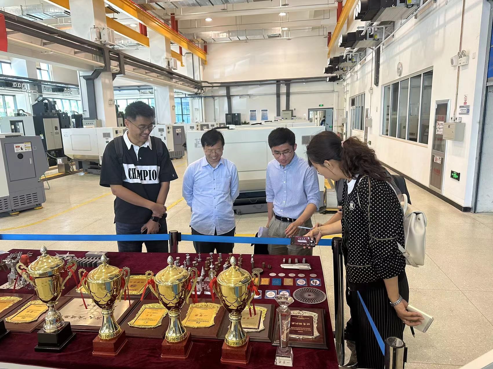 5月23日上午,华中科技大学工程实践中心党支部书记李昕、综合办公室主任陈文锷等一行4人来我院工程训练中心参观调研,工程训练中心主任付铁、副主任马树奇陪同。