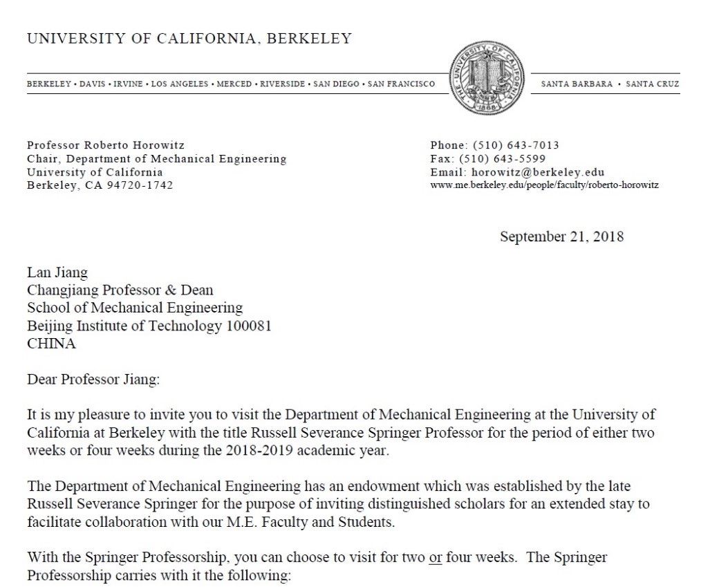 近日,北理工英国上市365官网姜澜教授入选美国加州大学伯克利分校Russell Severance Springer Professor(荣誉性质的杰出教授职位)。Russell Severance Springer Professor 每年全球遴选3人,要求被提名人必须为非常杰出的学者(The nominee must be a scholar of truly eminent stature)。该荣誉职位自1964年开始授予,54年内全球有149人入选,姜澜教授为中国大陆地区的第二名入选学者。