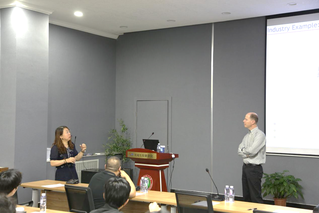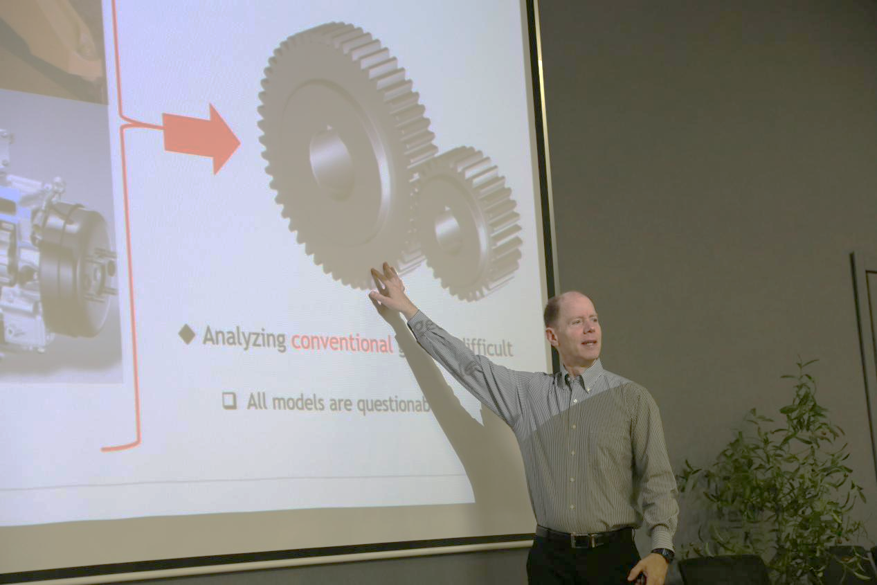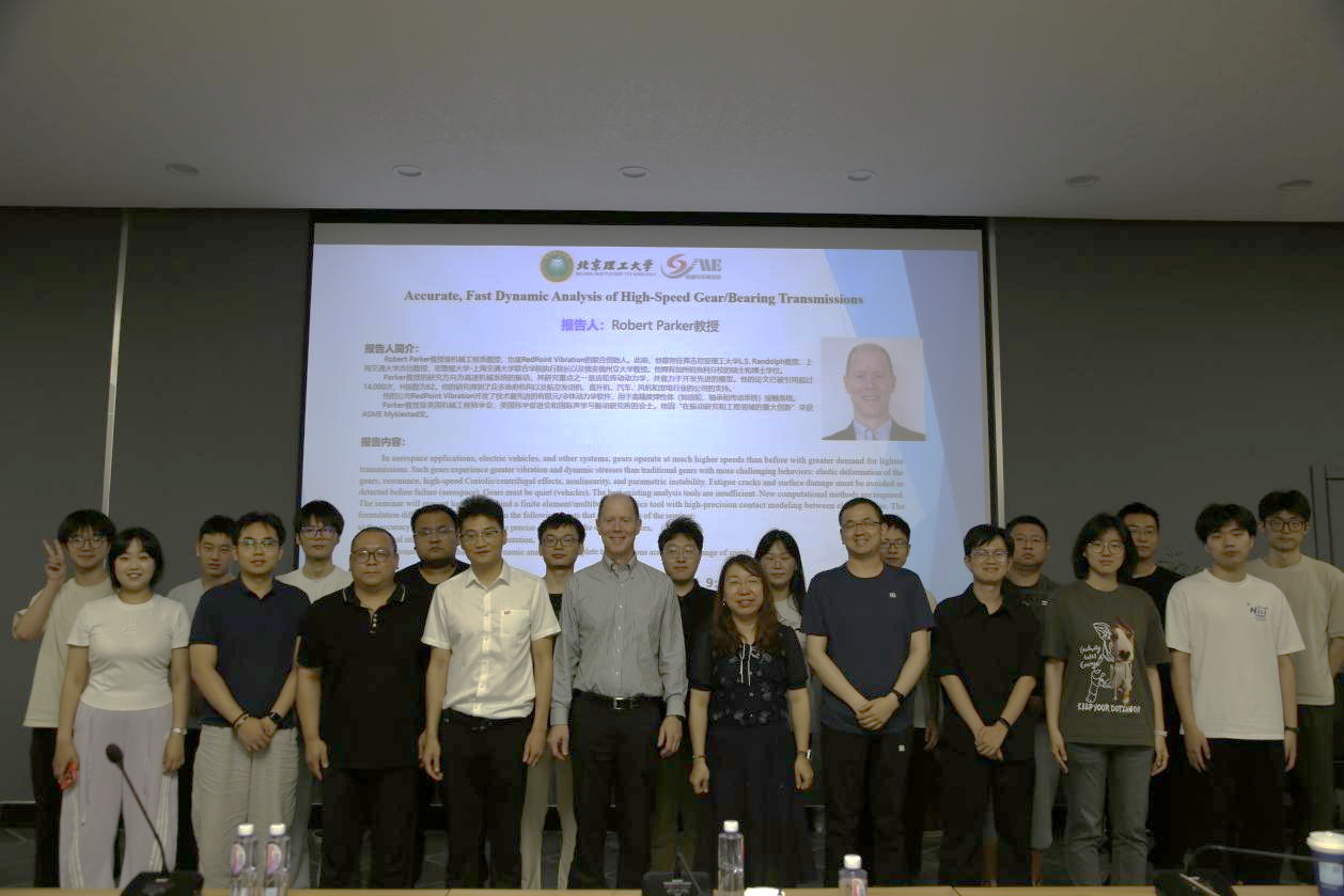 16日上午,Parker教授在车辆实验楼报告厅作专题学术报告,系统阐释"高速齿轮动力学创新解决方案:高精度接触建模与参数失稳抑制"。报告聚焦其开发的有限元-多体动力学耦合技术,通过高精度接触建模突破传统齿轮仿真局限。现场师生就非线性振动抑制、轻量化齿轮疲劳预警等前沿问题与教授深度互动,为学院齿轮动力学研究提供了新方法论指导。